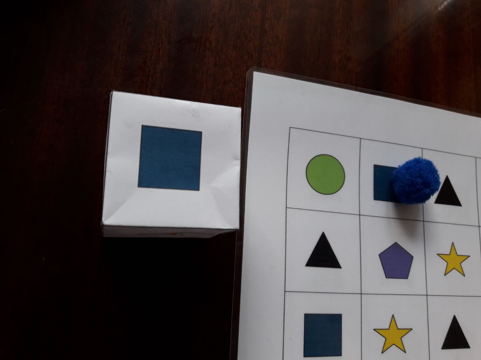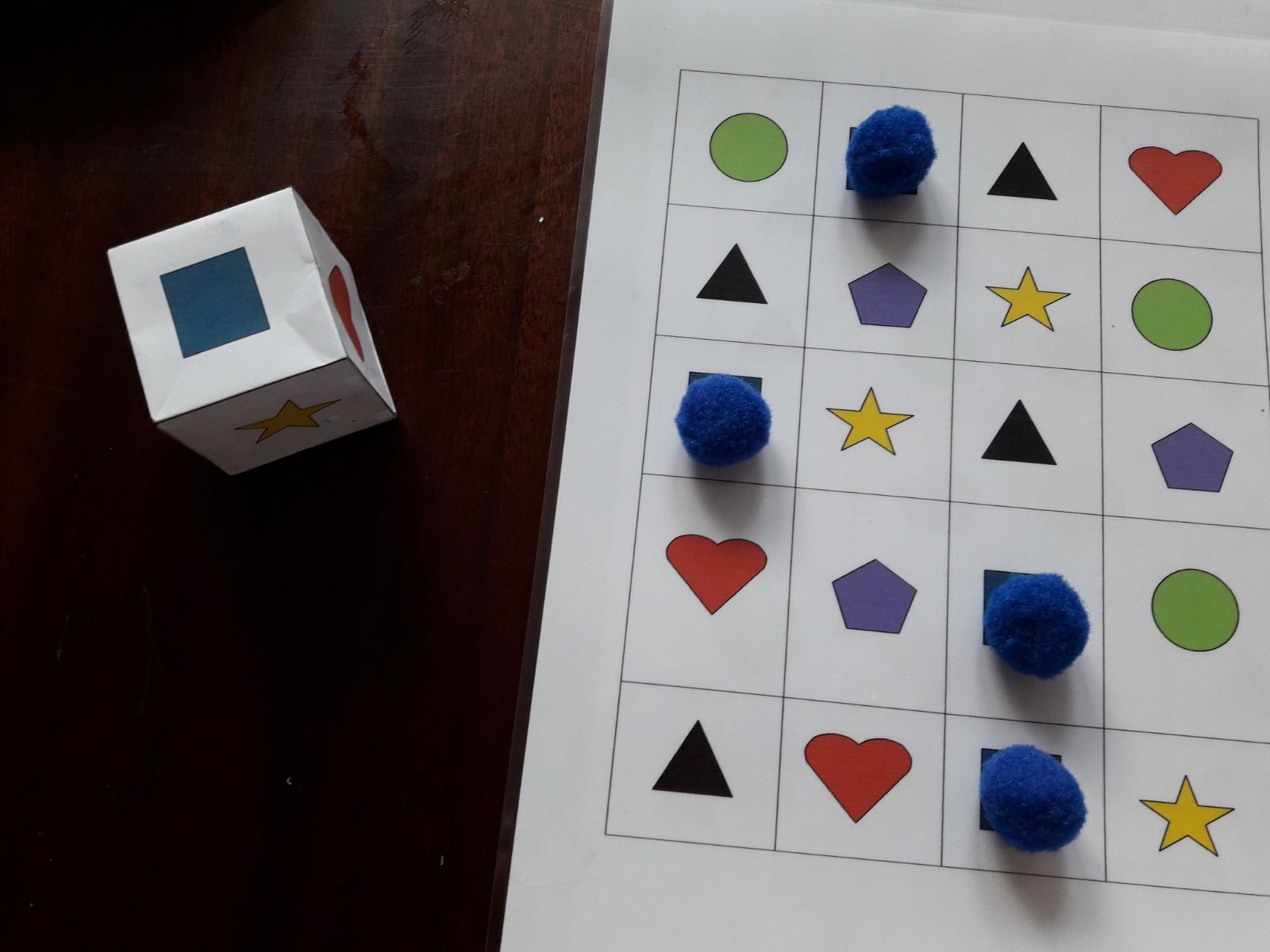 - Każdy z graczy, zaczynając od najmłodszego, rzuca kostką. Głośno wypowiada kolor i kształt wyrzuconej figury. Następnie na swojej planszy szuka wyrzuconego symbolu i zaznacza. Na początku wszyscy mają co zaznaczać, ale im dalej, tym trudniej, ponieważ rzucić można tylko raz, a kiedy nie ma już na planszy wyrzuconej figury, tracimy kolejkę.